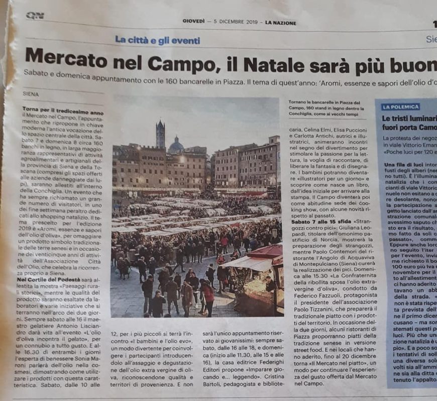Articolo su La Nazione – Siena 5/12/19