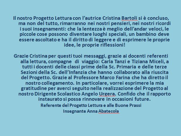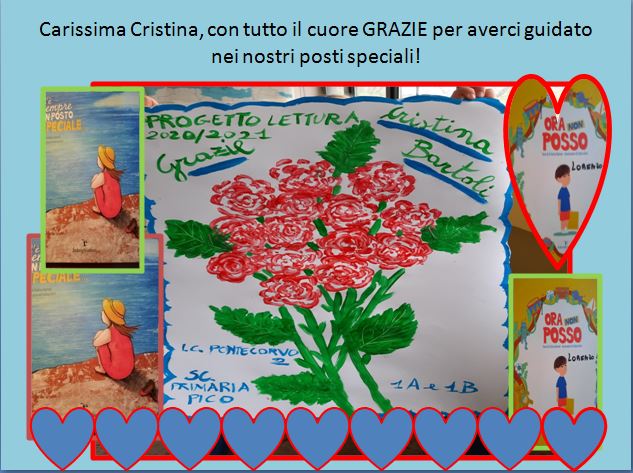 Scuola IC Pontecorvo 2 in provincia di Frosinone: mostra virtuale sui diritti dell’infanzia realizzata dopo la presentazione degli albi illustrati “C’è sempre un posto speciale” e “Ora non posso” con l’autrice Cristina Bartoli. Si ringrazia la scuola, il dirigente scolastico e gli insegnanti.