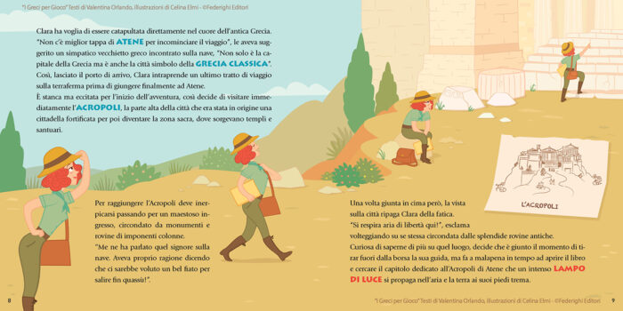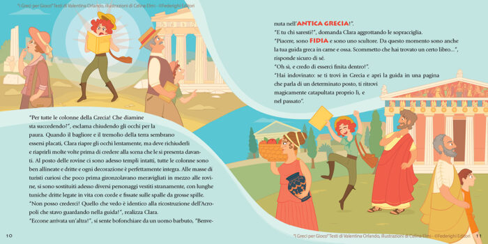 Con “I Greci per Gioco”, i giovani lettori possono intraprendere un viaggio nell’affascinante mondo dell’antica Grecia. Sono accompagnati da Clara, la brillante e curiosa giovane aspirante archeologa. Clara guiderà i bambini alla scoperta di storie di dei ed eroi, delle imponenti colonne dei templi, delle Olimpiadi e di una cultura che ha lasciato un’impronta indelebile nella storia.